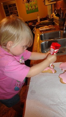 This BEAUTIFUL Easter weekend is turning into quite a busy one...we have just been being very flexible with our plans....so unlike me....but it's been great. Yesterday, while in Wal-Mart, ALONE, I pretty much ran into a station in the middle of the store full of cookie cutters and decorating things, so I thought that it would be a fun thing for Lilly and I to do that afternoon, together....SHE LOVED IT....
